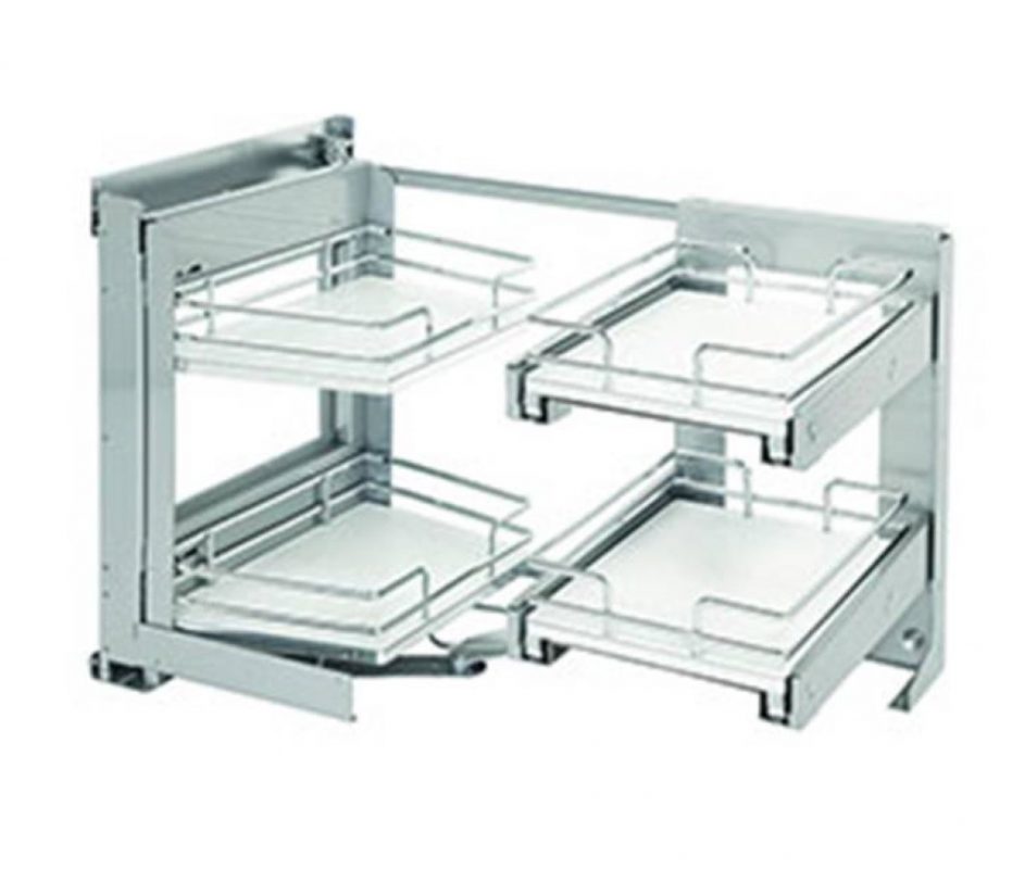 Extraible esquina Vibo «Galaxy» W=900mm Puert:450mm piso melamínico bco varilla oval cromado derecho