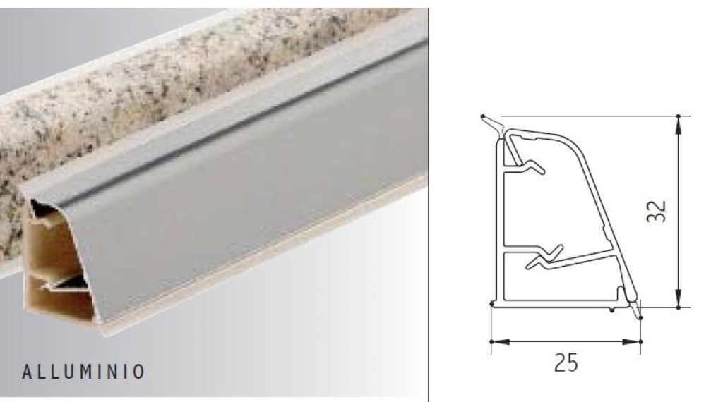Protección anti-escurrimiento para cubierta de cocina en ángulo Volpato «Alzatina 50/61» L=5 m W=25mm H=32mm Aluminio Mate