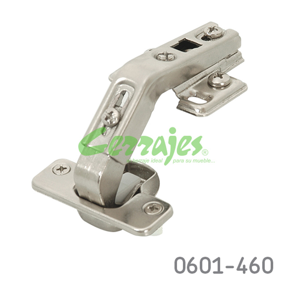 Bisagra enrasada Cerrajes «Reforzada» Ø=35mm cuello 15 48x6mm 110° base 4 fijaciones H=4mm niquelada