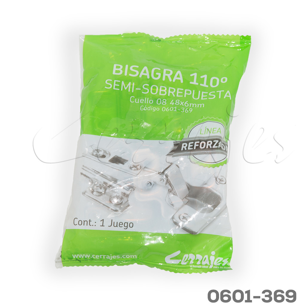 Bisagra semisobrepuesta Cerrajes «Reforzada»Ø=35mm cuello 08 48x6mm 110° base 4 perf.H=4mm niquelada