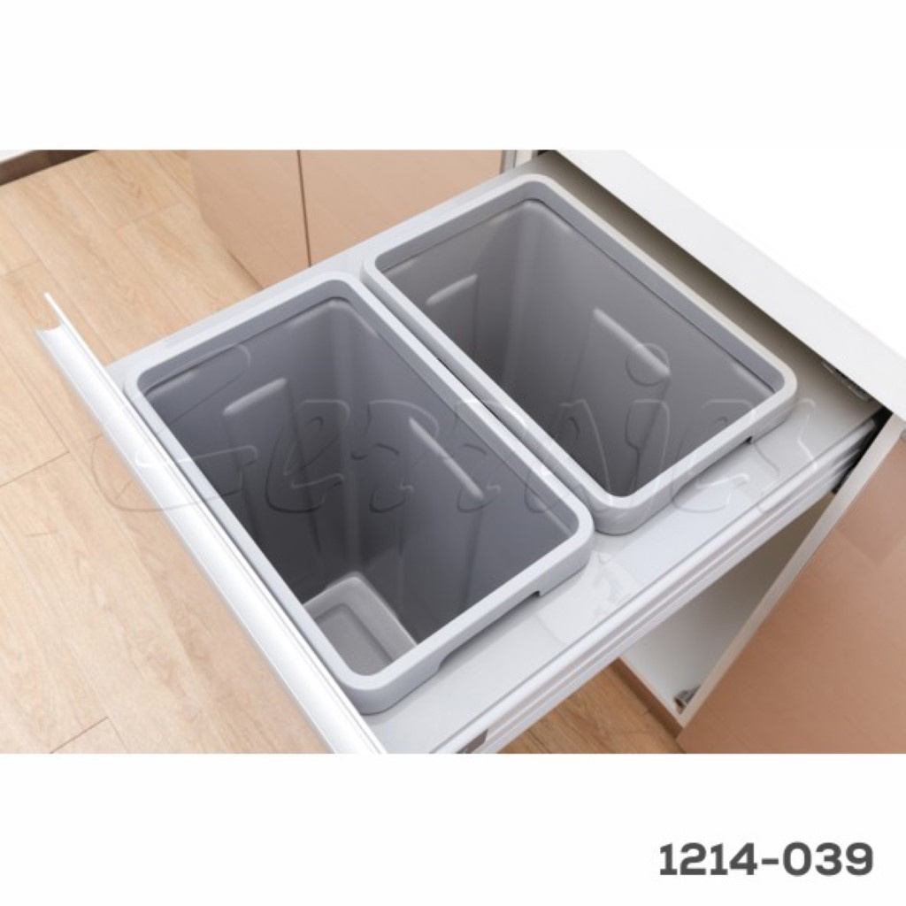 Bote doble p/basura Cerrajes «Cargo-Trash» W=450mm Gris 54L corredera «Stetik» c/cierre suave