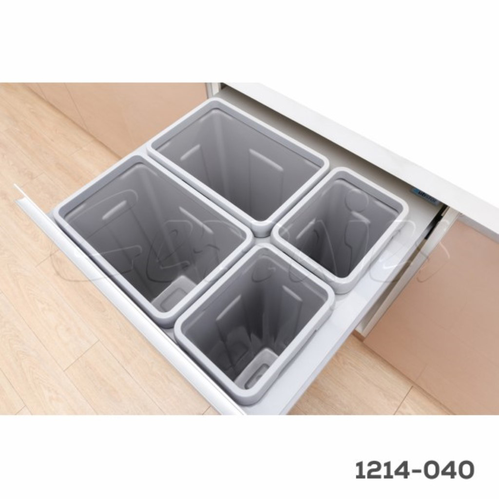 Bote cuádruple p/basura Cerrajes «Cargo-Trash» W=600mm Gris 72L corredera Ritma c/cierre suave
