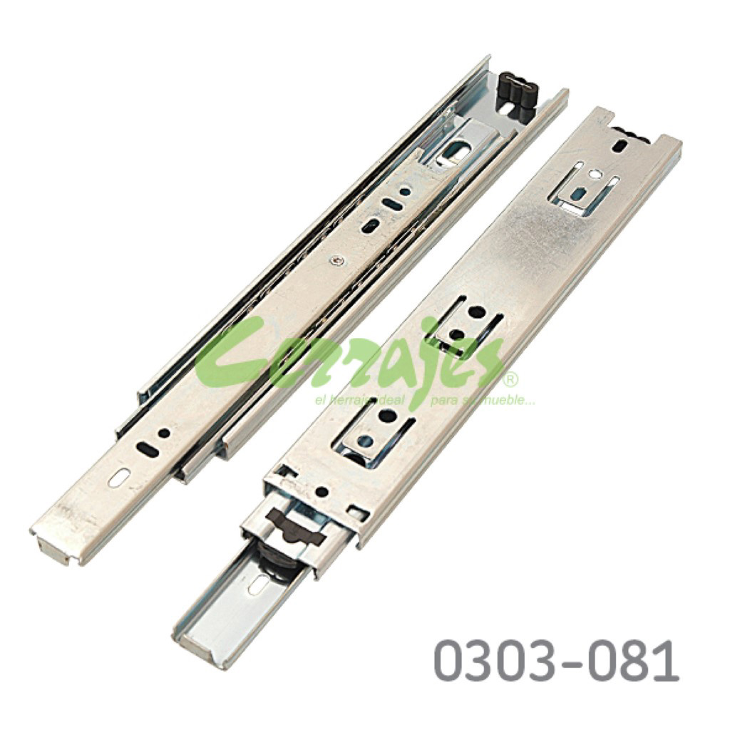 Corredera de baleros Cerrajes H=45mm L=250mm Zincada Extensión total Espesor 1,0mm