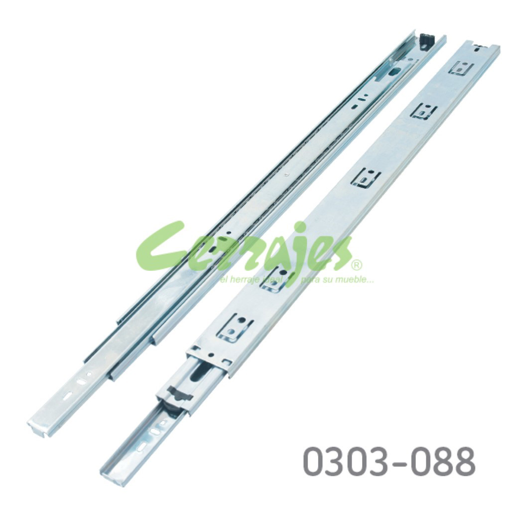 Corredera de baleros Cerrajes H=45mm L=550mm Zincada Extensión total Espesor 1,0mm