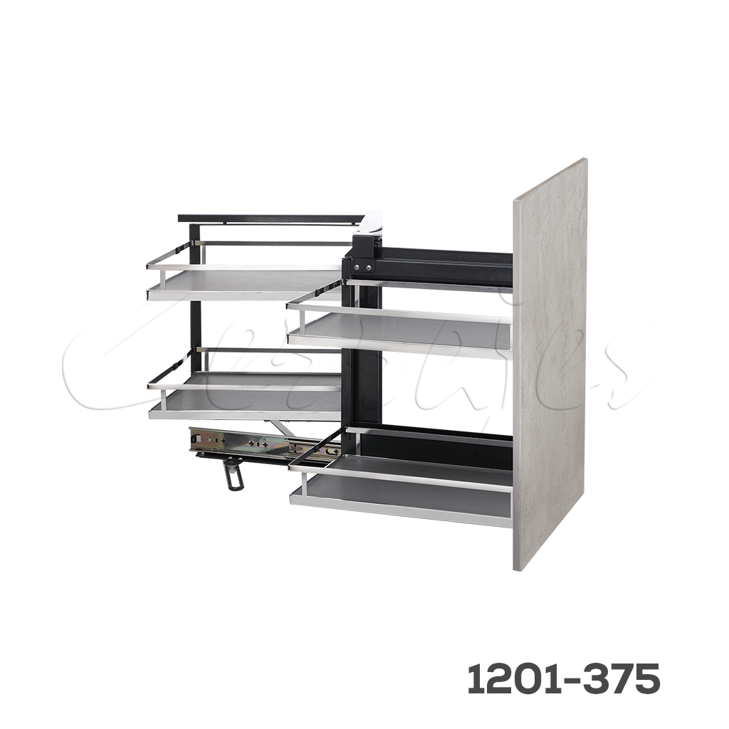 Esquina mágica derecha «Nápoles» varilla plana cromada y piso melamínico con cierre suave W=900mm