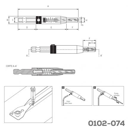Guía de perforación para instalación de jaladeras en frentes Cerrajes para brocas Ø=5mm