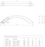 Jaladera Zamak cc 128 mm L=144 mm 4002 Z15 Latón pulido Tornillo M4x25mm