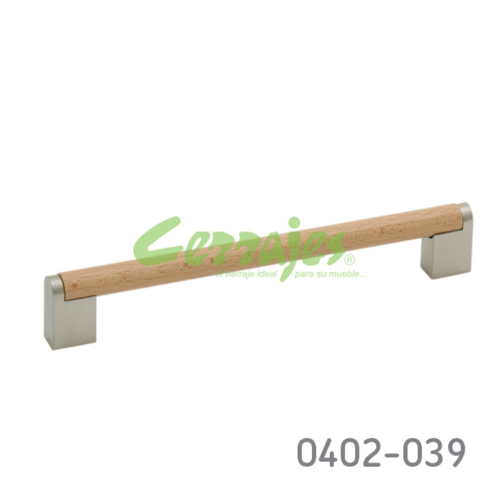 Jaladera Zamak cc 192 mm L=220 mm 4192 Z53 Acabado metálico con madera Tornillo M4Xx48mm