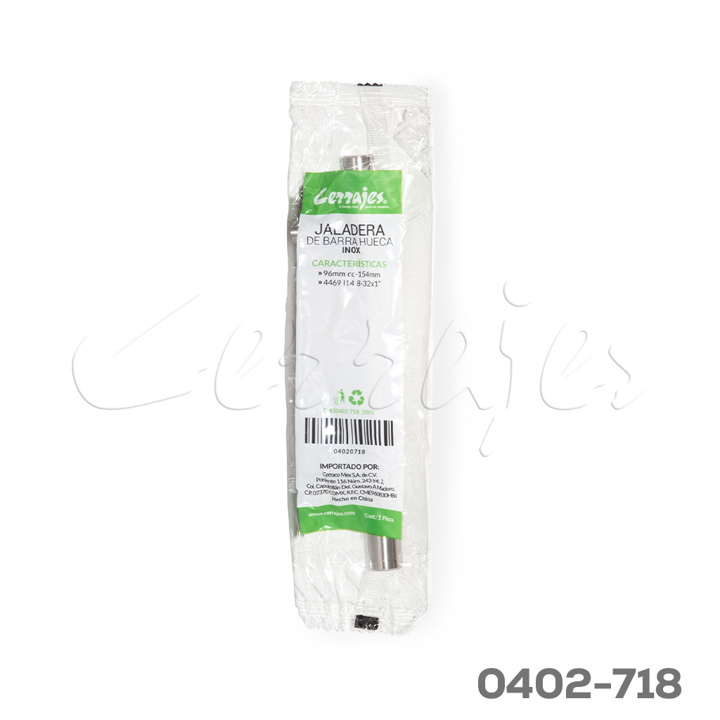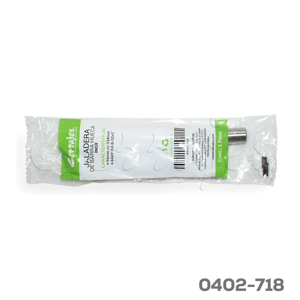 Jaladera barra hueca Acero Inoxidable cc 96 mm L=154 mm 4469 I14 cepillado Tornillo #8 – 32X1″