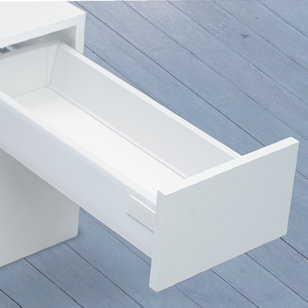 Corredera cajón cubertero doble pared enganche rápido Cerrajes «Stetik» H=86mm L=500mm epóxica plata