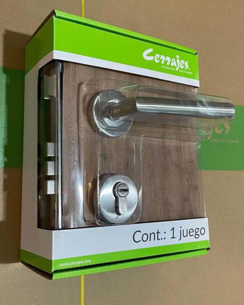 Manija de entrada, «Atria» mecanismo 85x60mm, 3 bulones, acero inoxidable cepillado