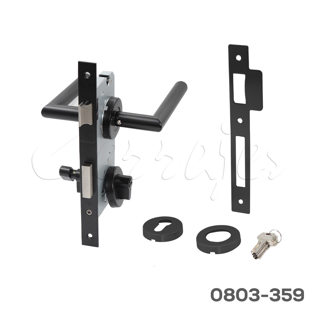 Manija de recamara, Mod.»Atria» mecanismo 85x55mm cilindro llave/mariposa, llave estándar,Negro Mate