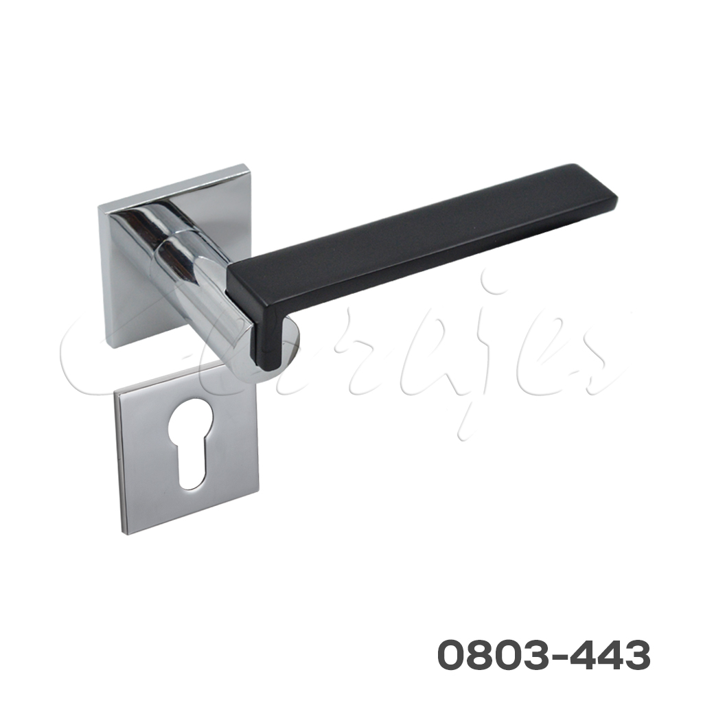 Manija Modelo Horizonte Zamak Cromo-Negro mate para mecanismo magnético rosetón cuadrado de 5mm
