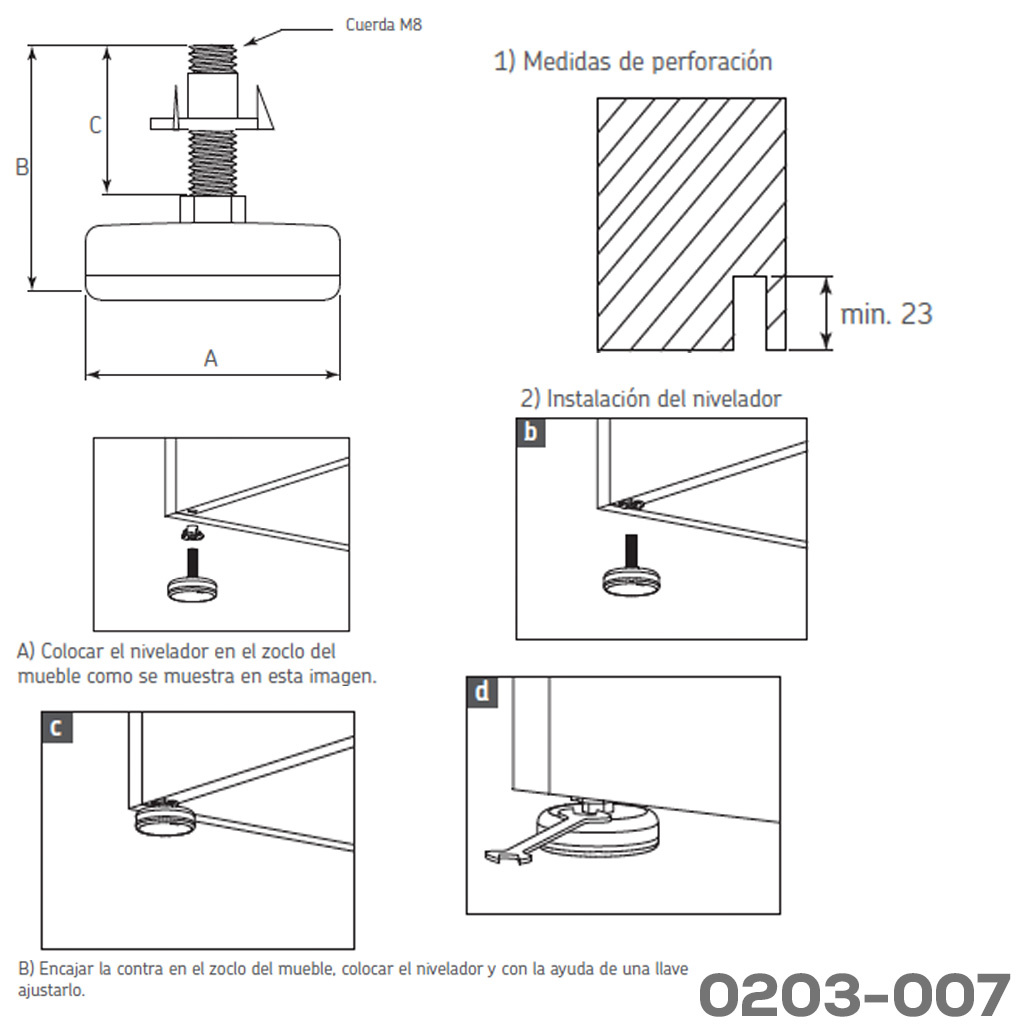 Nivelador de acero y plástico POM Ø=35mm 250Kg (4 piezas)