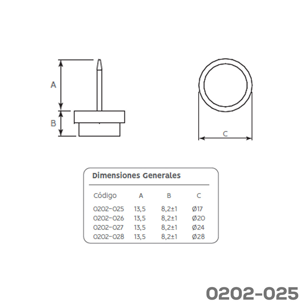 Inicio Otros Resbalón con clavo Cerrajes plástico + felpa Ø=17mm H=8,2mm blanco