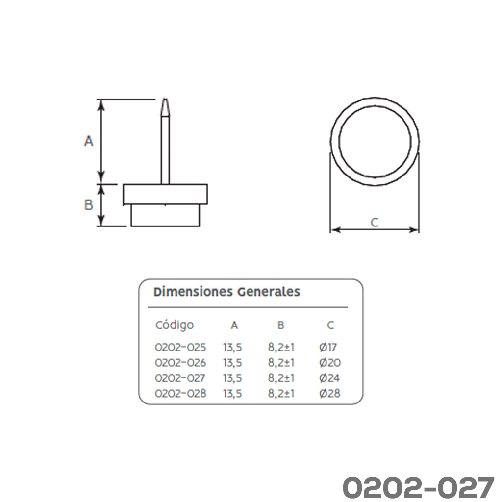 Resbalón con clavo Cerrajes plástico + felpa Ø=24mm H=8,2mm blanco