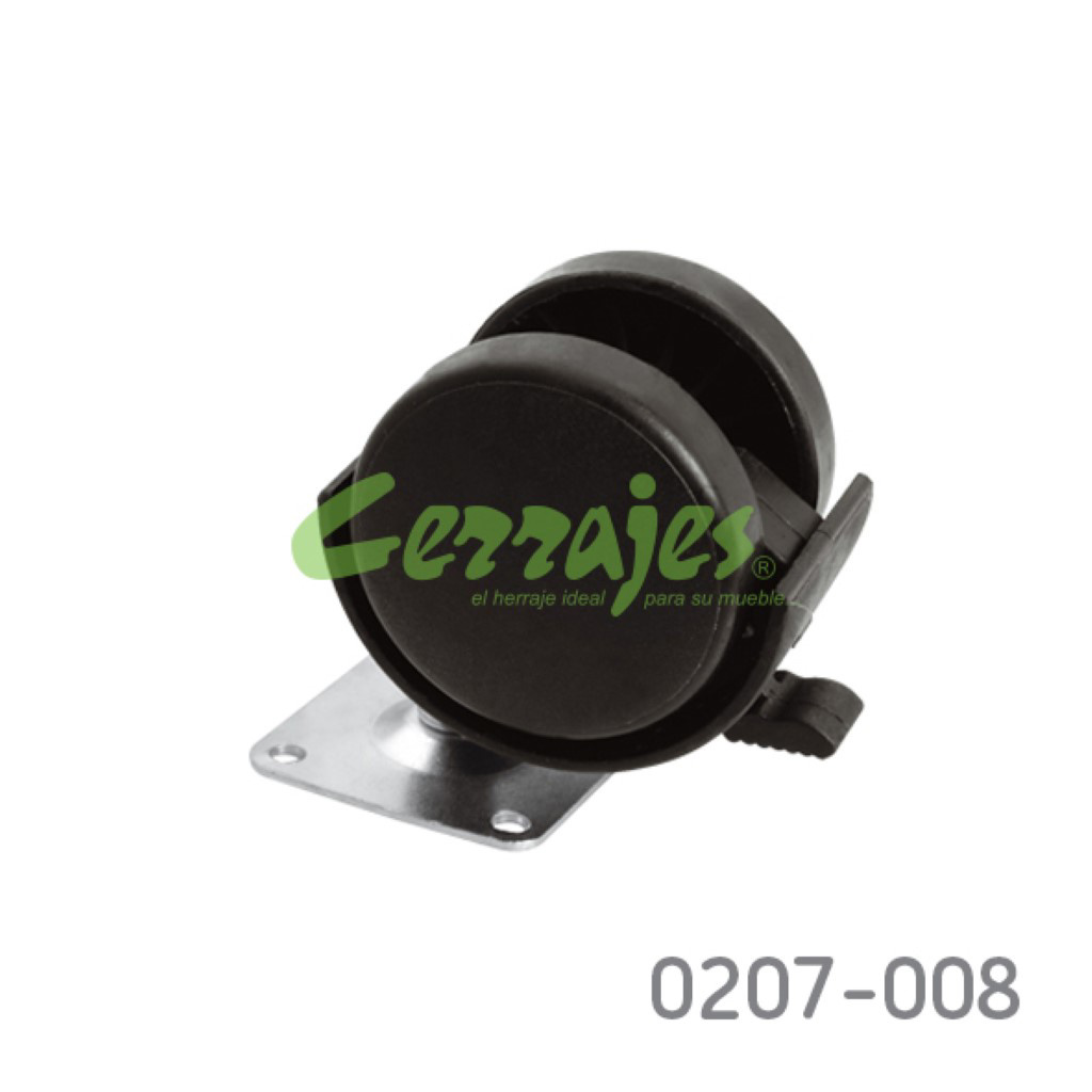 Rodaja plástica con placa 38x38 mm d 40 mm con freno