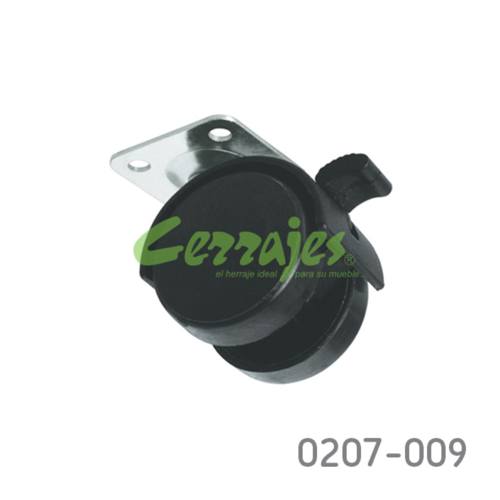 Rodaja plástica con placa 38×38 mm d 40 mm con freno
