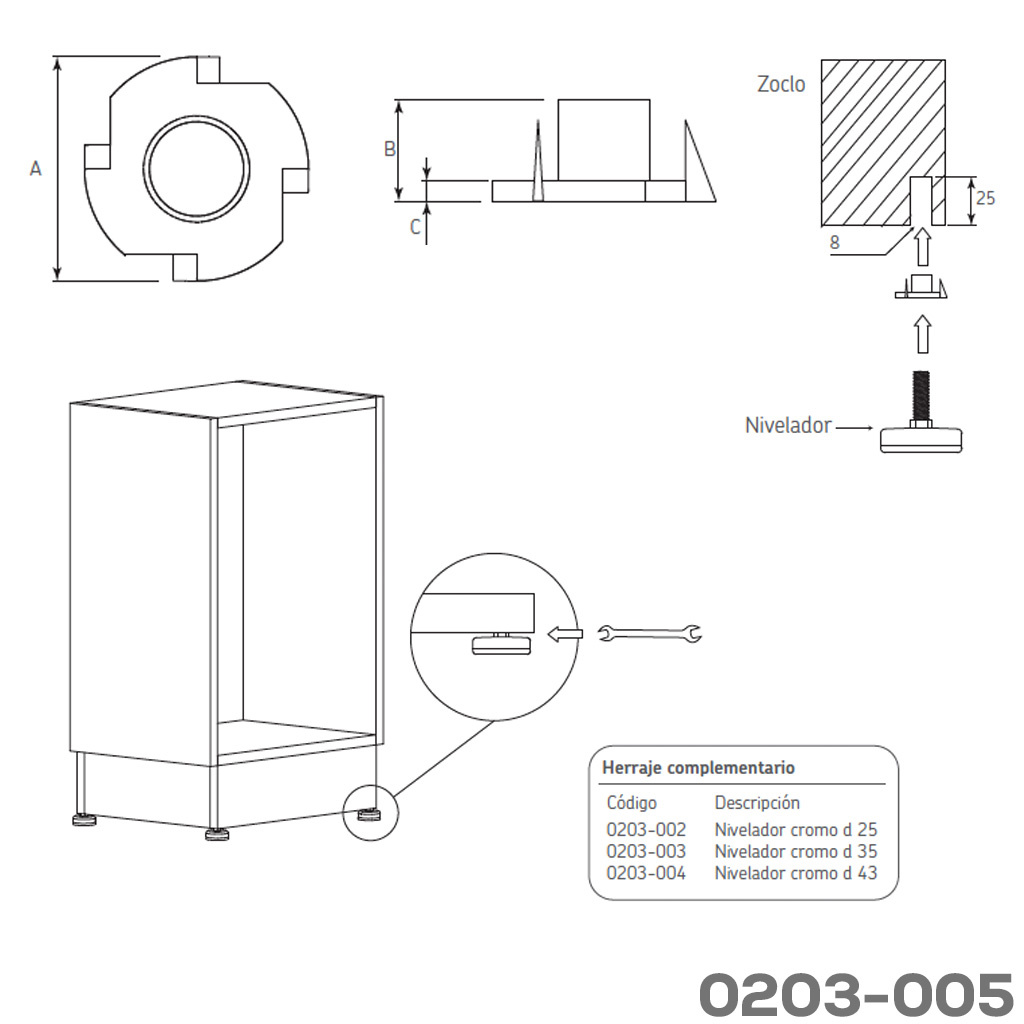 Nivelador de acero y plástico POM Ø=25mm 250Kg (4 piezas)